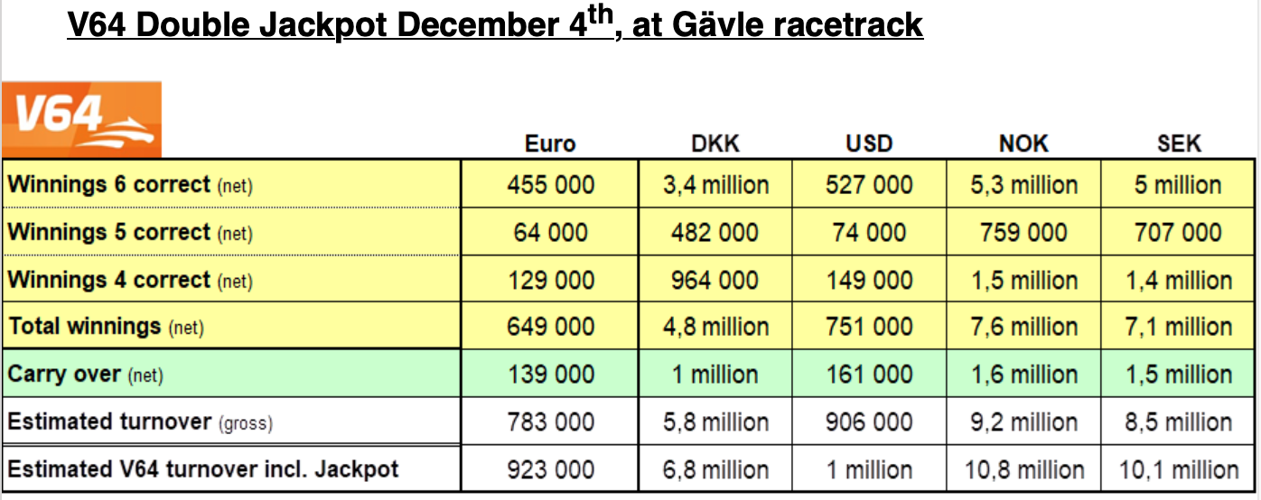 #V64 #Doppeljackpot #Gävle #Pferdewetten #Weihnachtsgeld #TotoPro #Trotto #V6Only #Pferdesport #Jackpot |