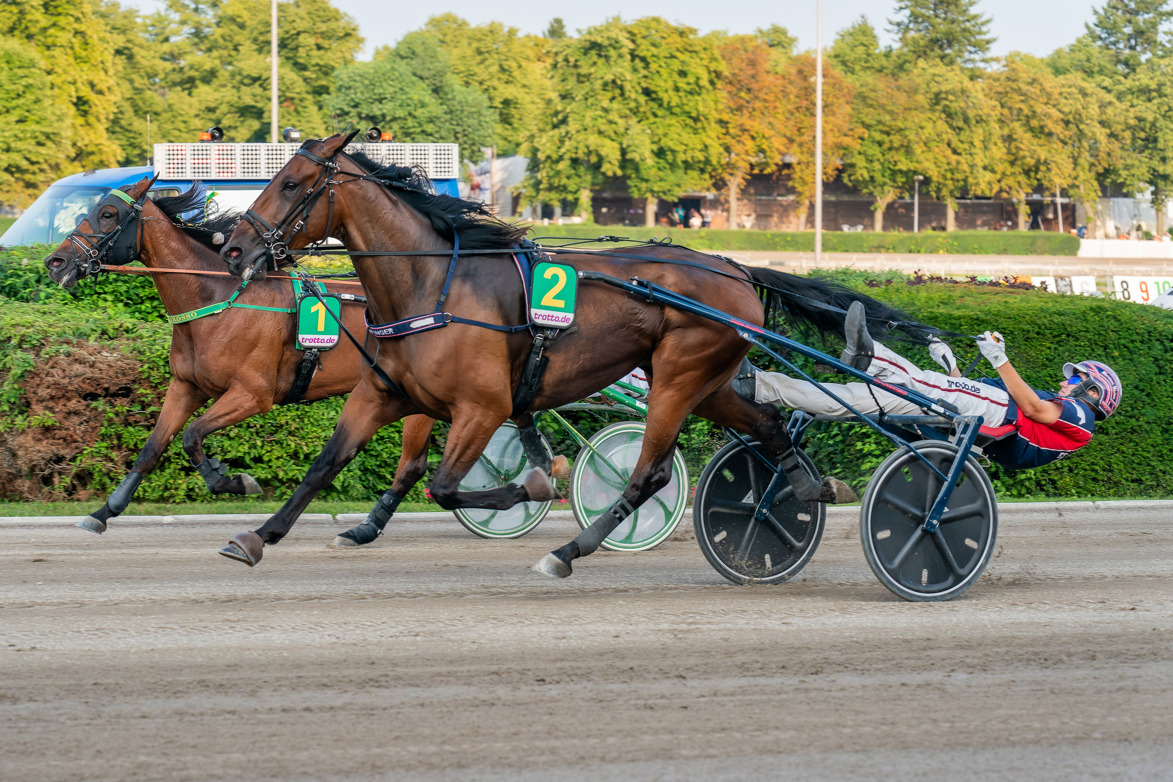 Vorschau Mons, Dienstag 14.10.2025 (hh) Mit Goldfinger und Nordin wird sich Marciano Hauber am Dienstag auf den Weg nach Mons machen. Beide Starter sollten mit guten Chancen an den Ablauf kommen. Den Anfang wird im vierten Rennen Goldfinger machen, der zuletzt in Hamburg dem Lasbeker Toledo mit einem Tempolauf von der Spitze gründlich den Zahn zog und seinerseits sehr souverän in flotten 1.13,7/ 2.200 m triumphierte. In dieser Mitteldistanzprüfung hat der Muscle Mass-Sohn gute Chancen gleich nachzulegen und muss insbesondere auf Rhea DI (Marc Huygens) und den zuverlässigen Nanbora (Marc Moes) achten. Für den nicht minder formstarken Nordin geht es dann im siebten Rennen mit dem idealen Startplatz drei über etwas mehr als eine Meile. Der Fünfjährige siegte zuletzt am Derbysonntag in Mariendorf mit Nick Schwarma in einem Amateurfahren durch und war auch bei den vorherigen Auftritten in 2025 nie schlechter als Dritter. Der Fünfjährige steht hier nach Gesamtform augenscheinlich doch etwas über den Gegner und sollte als klarer Favorit an den Ablauf kommen. Die mit den äußeren Startplätzen bedachten Polien de Lille (Lynus Lannoo), Perfect One (Jo Corbanie) und Roddy Mom (Hanna Huygens) sollte sich um die besseren Plätze streiten. Hier der Link zum Rennprogramm: https://www.trotto.de/rennen/Trab/Frankreich/Mons__Ghlin_/141025030304 |