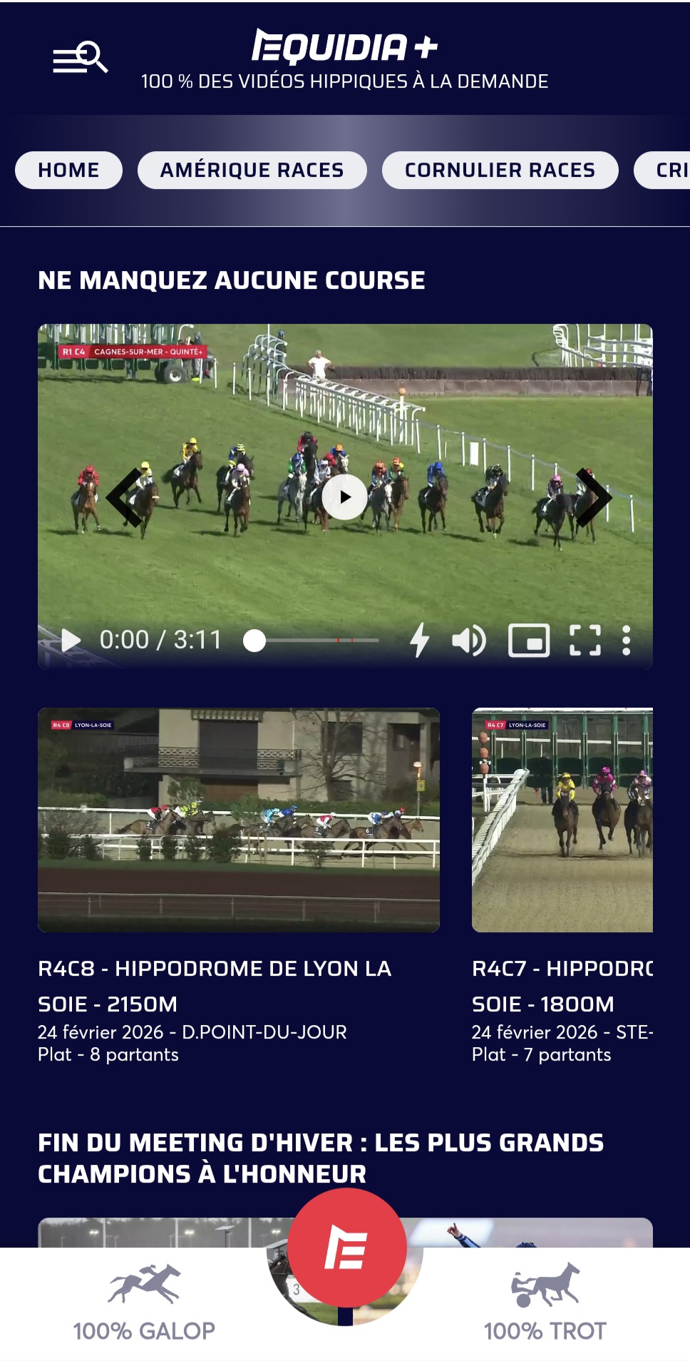 'Equidia+' läuft unter dem Slogan "100% der Pferderenn-Videos auf Abruf". Damit erfüllt sich eines der Ziele des Präsidenten der SETF, Jean-Pierre Barjon, der zugleich Präsident von Equidia ist: einen Service für Profis und Wetter nach dem Vorbild von "My Canal+" zu etablieren. Also eine Streaming-Plattform für Rennsport-Inhalte. Zu den Sendungen von Equidia, die nun nicht nur über YouTube später gestreamt werden können, gehören unter anderem: "Grand Debrief", "Grande Heure Hippique" aber auch Reportagen wie "Guest Star" oder "Passion Courses". "Equidia+" ist ab sofort auf equidia.fr (Desktop & Mobil) verfügbar und bald auch als mobile App sowie auf dem Smart-TV. |