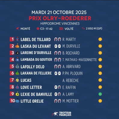 Die zweifache Gruppe I-Siegerin, Zweite des letzten Prix d’Amerique, sowie Dritte im Grand Prix du Sud-Ouest 2024 (damals in Agen), bringt beste Voraussetzungen mit. Sie hat bereits bewiesen, dass sie auch auf Rechtskursen zurechtkommt. Die von Laurent-Claude Abrivard trainierte und von Alexandre Abrivard gesteuerte Stute hat nach ihrem Auftritt im Prix d’Amerique eine Pause einlegen müssen. Seit Juli ist die Love You-Tochter wieder behutsam in den Rennbetrieb zurückgekehrt. Während der drei Prepare zeigte sie vor allem am 24. August in Laval eine erste ansprechende Leistung. Diesmal wird sie hinten ohne Eisen und vorn 'plaquée' antreten, was derselben Konfiguration entspricht, mit der sie im Vorjahr Dritte wurde. Zudem hat sie mit Startplatz 2 eine ideale Ausgangsposition hinter dem Auto. Vieles spricht für die 6jährige.