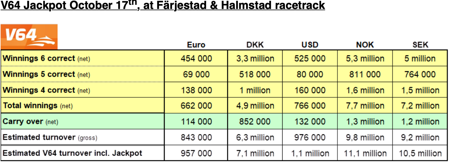 Tipp der Experten: Spielen Sie Ihre V64 als V6 only. Hier verzichten Sie auf die Gewinne der 4 und 5 Richtigen. Dafür bekommen Sie den 1.Rang x 2,5 ausgezahlt. Lycka till!