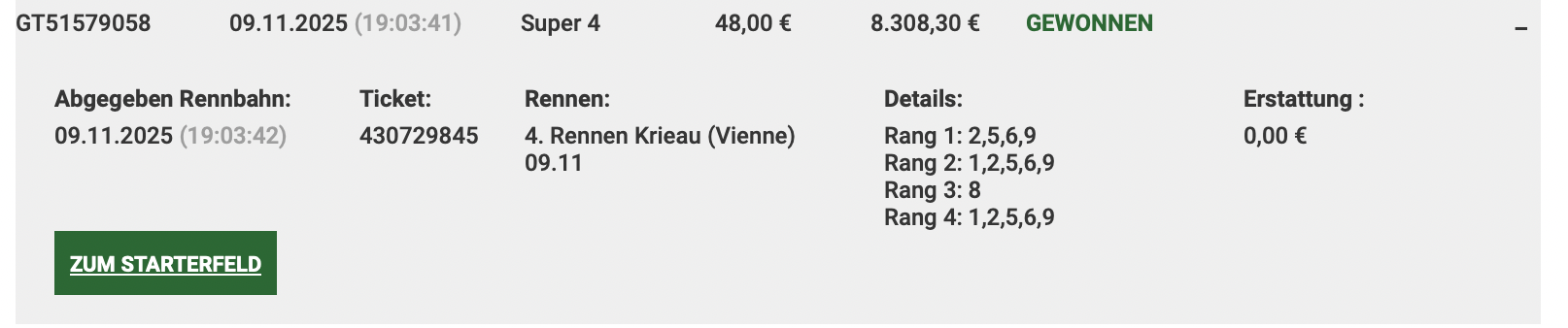 Da weiß nie ob man sich mehr freuen oder ärgern soll. Unterm Strich bleibt ein fast 70facher Gewinn. Frage beantwortet. |