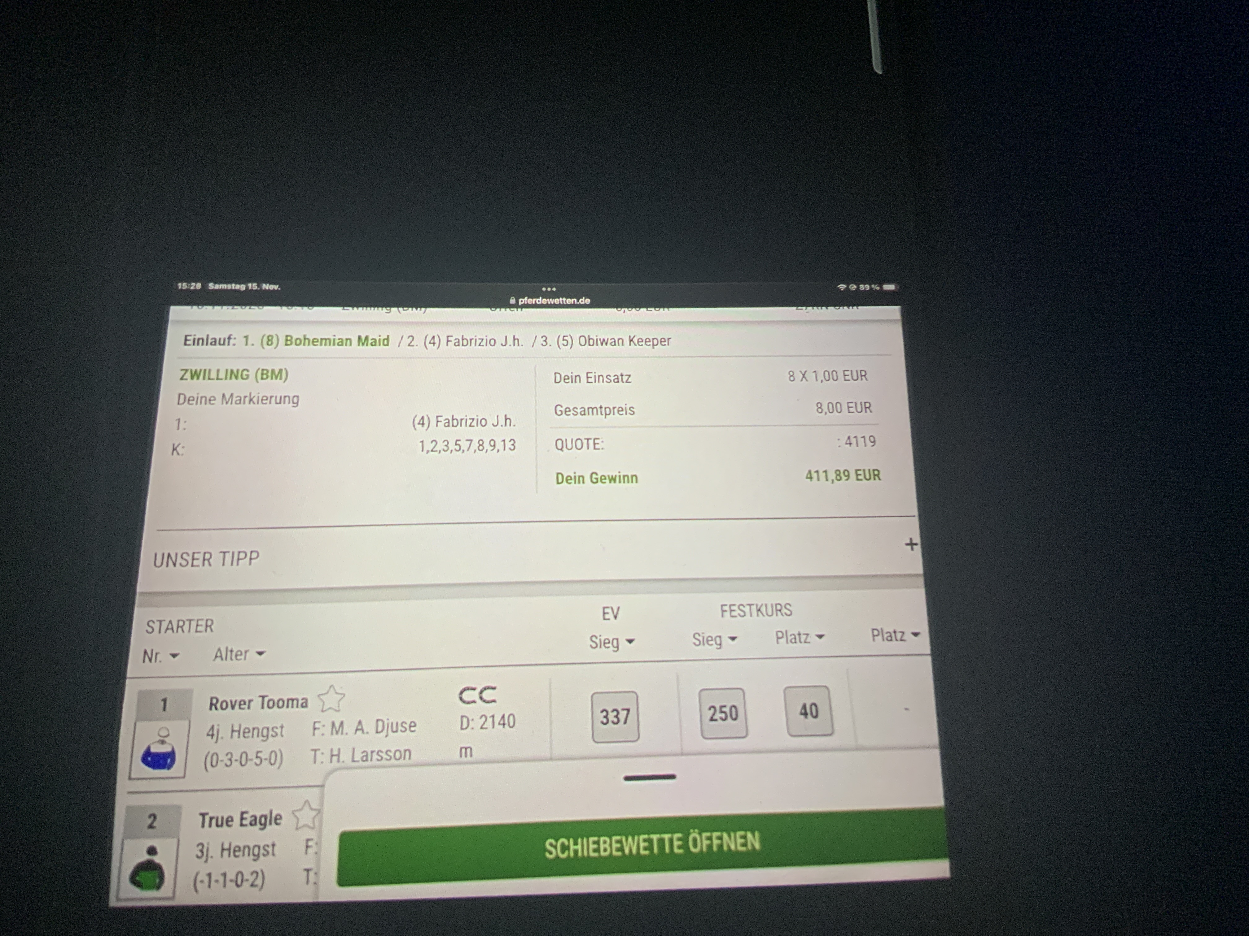 Im Letzten hat leider der schlechteste gewonnen und Tangelo war eigentlich schon geschlagen (wäre das Vierfach)