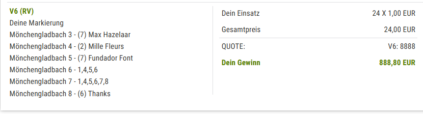 Sehr gute Quote mit den beiden Favoriten. |
