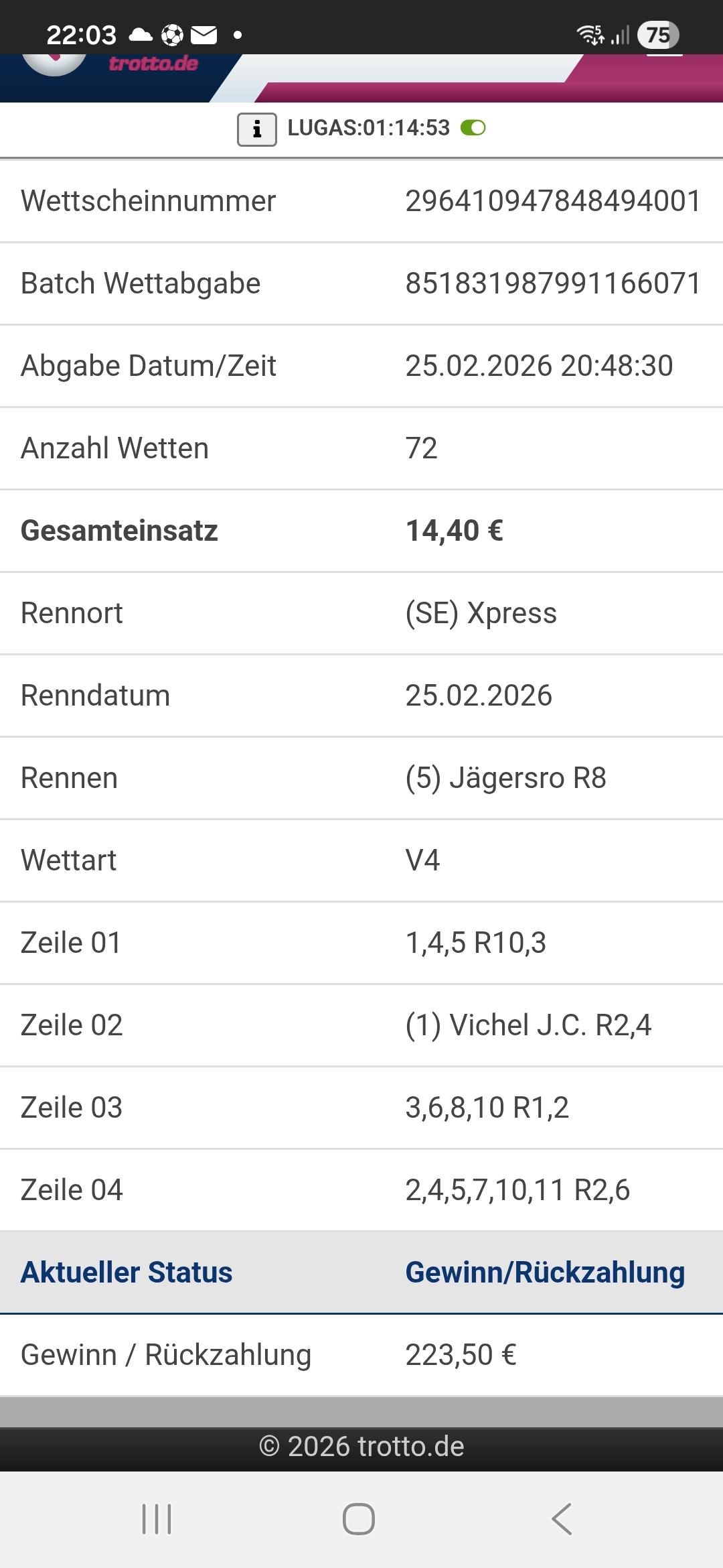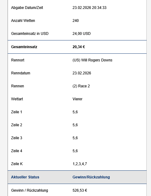 Eine schöne Quote für die Quinte, wenns auch nicht genau von der Reihenfolge her passt ☺️