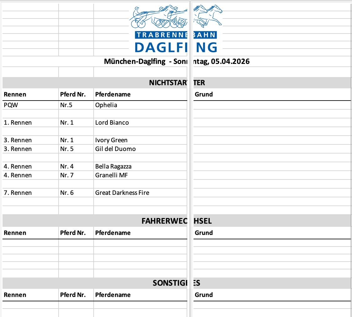 Alexander schreibt: Schau' Dir mal die Anfahrphase an. Kalou hat einen Startfehler gemacht, weil während des Anfahrens einer von links von der Wiese kam und dann noch einer rechts an ihm vorbei schoss. Zudem noch das Gebrülle von der Rennleitung direkt an der Einfahrt zum Band. Da war es dann mit dem Fokussieren vorbei. Ich habe mich sehr darüber geärgert, dass die Anfahrphase nicht abgebrochen wurde. lieben Dank! Ich bin nicht dünnhäutig. Wollte ja auch nur wissen, ob es sich bei den 200 Metern um einen Schreibfehler gehandelt hat.😉 Schöne Ostern und einen erfolgreichen Renntag🍀 |