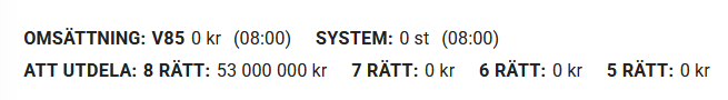 https://www.expressen.se/sport/trav/premiar-pa-lordag-sa-blir-nya-v85/ 85 Mio SEK spielen sie zum Start der V85 am kommenden Samstag aus. So lese ich es jedenfalls heraus🙂 |