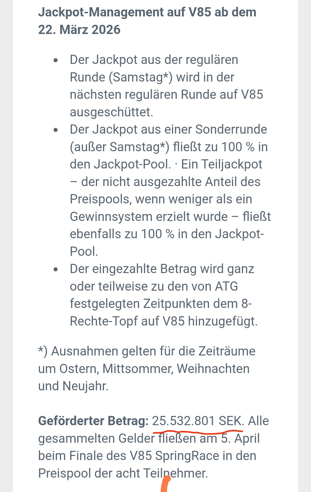 Sonntag 5.4 Ostersonntag Jackpot in der V85 in Romme Eine TG wäre schön, man sieht ja was möglich wäre, bei 8 richtigen Vielleicht kommt noch mehr dazu , wer weiß