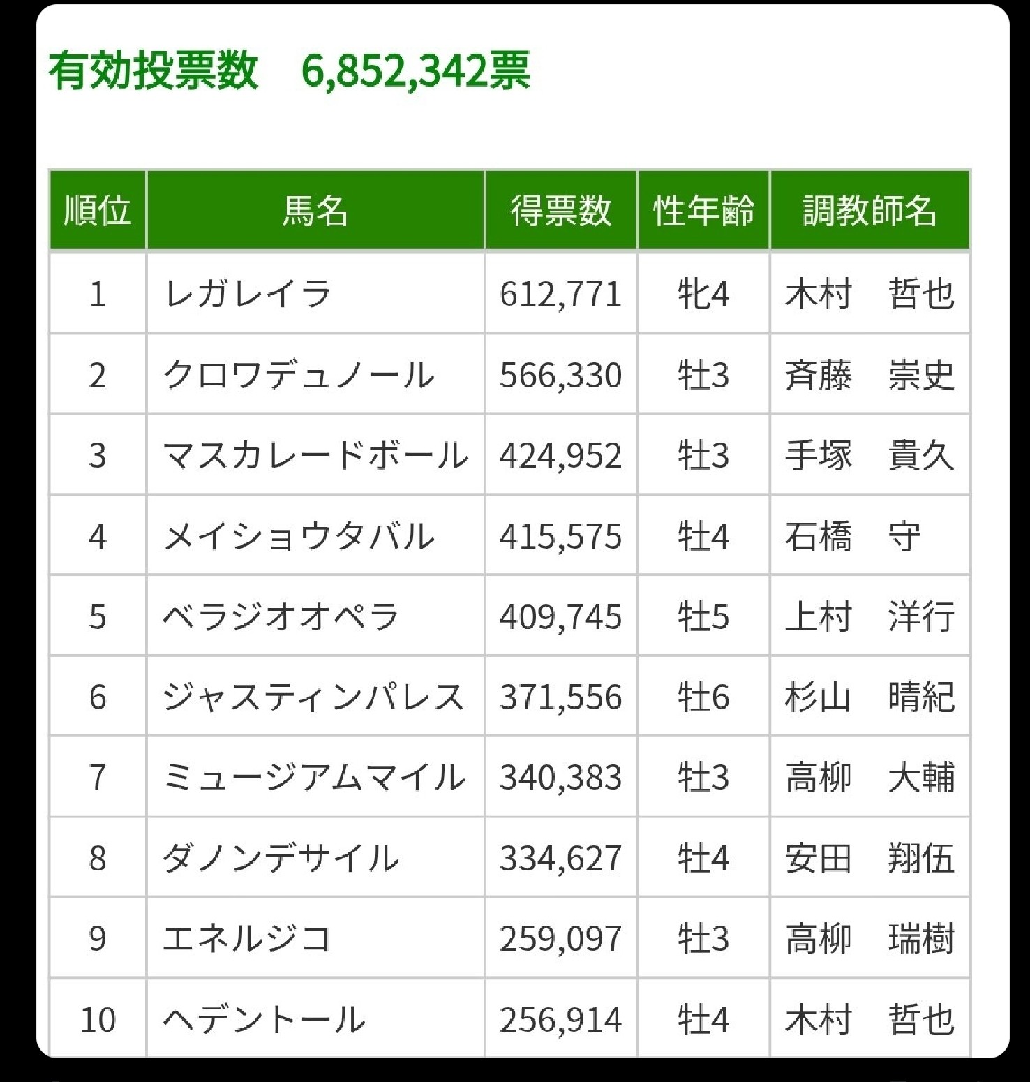 Aber eigentlich.... Die Wahl für die 10 best gevoteten Pferde fürs Arima Kinen ist mit Rekord Beteiligung abgeschlossen. 6,852.342 mio aktiv Beteiligte. Die also in 3 Durchgängen die Seite besucht haben und aktiv für ihren Wunsch Teilnehmer gestimmt haben. JRA freut sich, wieder xx tausende neue Emailadressen/Anmeldungen fürs Marketing. Da kann man ruhig ein paar Tausend Plushies oder Gutscheine verschenken. Die meisten Stimmen bekam Titelverteidigerin Regaliera. 612.771 Stimmen konnte in der Geschichte des Votings nie ein Pferd erreichen. Es wird wieder einen neuen Umsatzrekord geben.