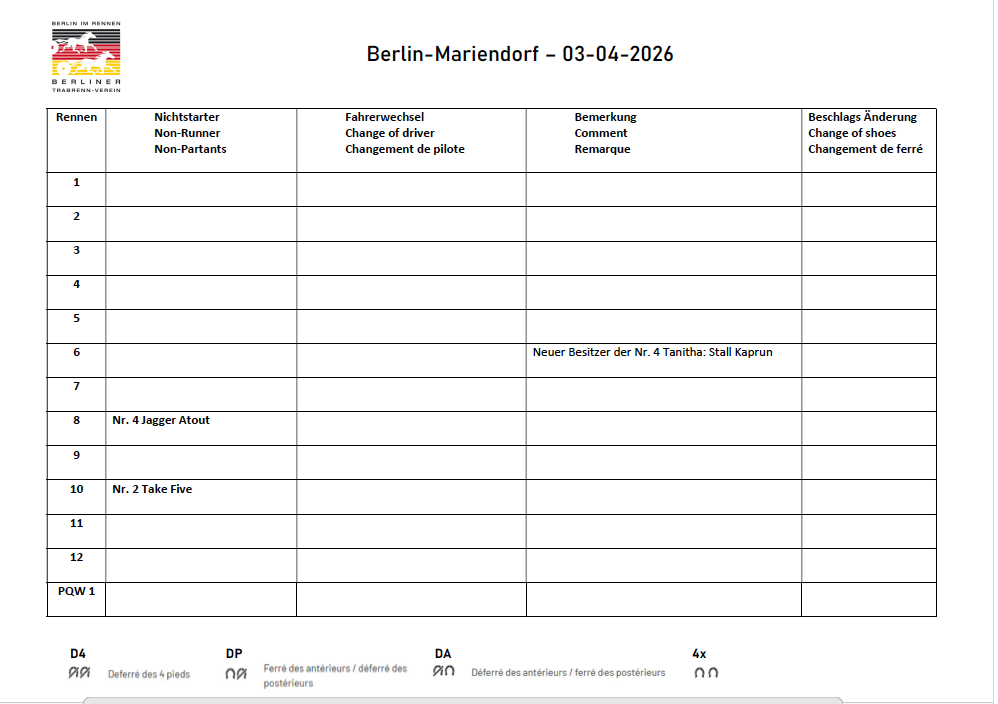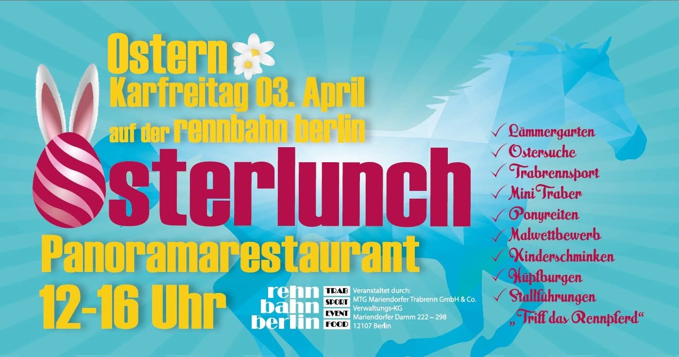 🐣🌸 Osterrenntag auf der Trabrennbahn Berlin-Mariendorf 🌸🐣 Am Karfreitag ist es wieder so weit: Die Trabrennbahn Berlin-Mariendorf lädt zum traditionellen Osterrenntag ein! 🐎✨ 👨👩👧👦 Das erwartet euch: 🎉 Ostereiersuche für Kinder Große Prämienausspielung! Zusätzlich zu den 2.000 Euro Wettgutscheinen winken Hotel- und Ticketgutscheine. 🌟 Highlight: Das Mini-Traberrennen – hier zeigen Kinder (6–16 Jahre), was sie mit ihren Ponys gelernt haben! 🏁 Sportliche Höhepunkte: 🍽️ Genuss & Entspannung: Des Weiteren sind das Teehaus (oben und unten) sowie das Stall-Casino Old English geöffnet. ⏰ Infos auf einen Blick: 🎟️ Eintritt: 💬 „Der Osterrenntag gehört seit vielen Jahren zu den beliebtesten Veranstaltungen unserer Saison – wir möchten unseren Gästen einen rundum schönen Feiertag für die ganze Familie bieten.“ 📍 Ein perfekter Ausflug für Berliner Familien rund um Ostern! 🔗 Mehr Infos: www.rennbahn-berlin.de
