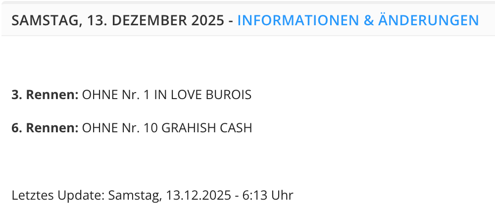 In einer recht ausgeglichenen Prüfung kann durch den Start nach kurzer Pause Needlefish Boko (6) mit seinem starken Antritt zu einem Start-Ziel Erfolg gelangen. Joceline BR (4) verkaufte sich bei den letzten Starts wieder deutlich stärker und kann an diese Vorstellungen anknüpfend abermals unter den ersten Drei zu finden sein. Nena Greenwood (3) holte nach ihren Sieg in Wels auch zuletzt Triest auf der Kurzstrecke wieder ein gutes Ergebnis und sollte daher auch in dieser Prüfung über beste Möglichkeiten auf ein besseres Geld verfügen. Muscle Magic (9) lieferte bei den letzten beiden Starts sehr enttäuschende Vorstellungen, kann diesmal gezwungenermaßen aus der Defensive gesteuert aber vielleicht wieder besser entsprechen. Aufunddavon (8) konnte bei seinen Starts im November mit den kleineren Geldgewinnen zu starker Gesellschaft durchaus gefallen und ist bei passendem Rennverlauf durch diese Leistungen für ein Platzgeld möglich. Fly Home (7) hat ein recht gutes Formenbild zur Hand, benötigt über die Mitteldistanz jedoch optimale Bedingungen um die Serie an Top-3 Platzierungen fortzusetzen. Ink Flame (2) wirkte bei den letzten Auftritten nicht ganz so stark wie in der Badener Saison, ist jedoch mit seinen starken Antritt und der guten Ausgangslage für eine Überraschung nicht zu unterschätzen. Velten Prada (5) hatte bei den letzten Starts immer wieder einmal Pech mit den Rennverläufen, zeigt aber dennoch immer wieder recht ordentliche Leistungen womit bei etwas Glück eine Überraschung gelingen kann. Follow my Dreams (1) ist mit seinem schnellen Antritt und der inneren Nummer nicht so schlecht untergekommen und daher durchaus wieder für eine bessere Prämie vorstellbar. Ayra (10) konnte bei den bisherigen Starts in Österreich nicht überzeugen und geht daher als krasse Außenseiterin an den Ablauf.