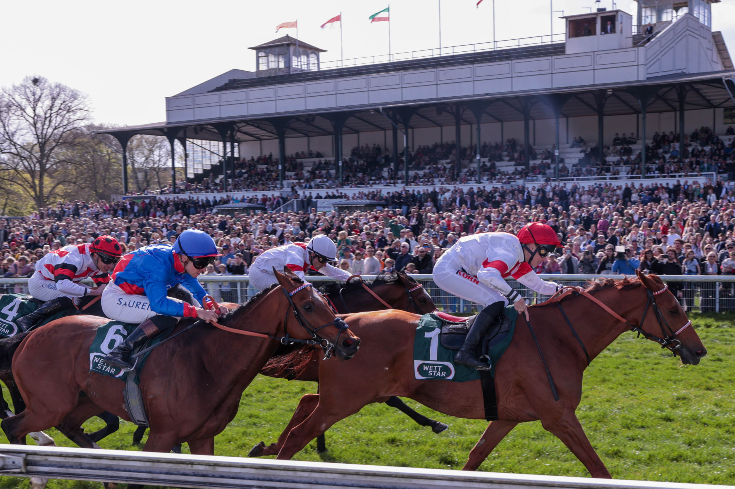 AUSBLICK: Mit dem kommenden PREMIUM RENNTAG und den sportlichen Höhepunkten Sauren Dachfonds Preis und Karin Baronin von Ullmann – Schwarzgold-Rennen findet die nächste Veranstaltung auf der Kölner Galopprennbahn am Sonntag, den 3. Mai, statt. |