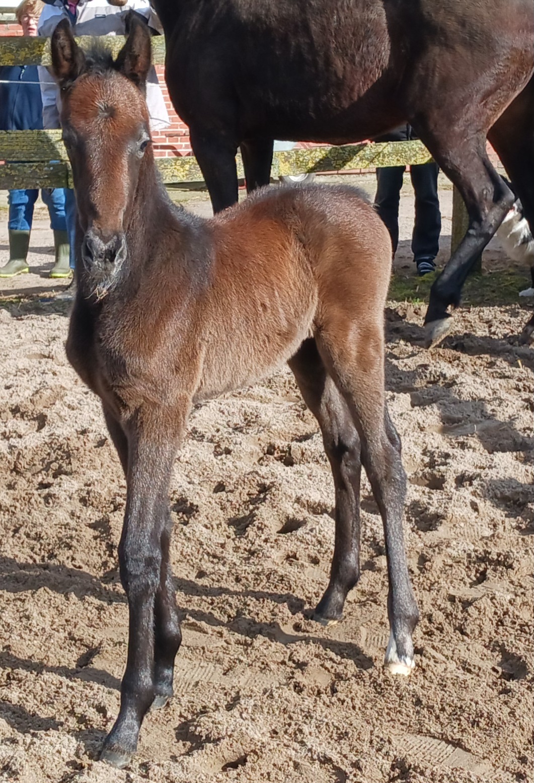 Der letzte Nachkomme von Preussenstolz- er hat ein "V" für victory auf der Nase, oder? Wir waren uns nicht einig, aber ich vermute, dass er ein Schimmel ist/wird.