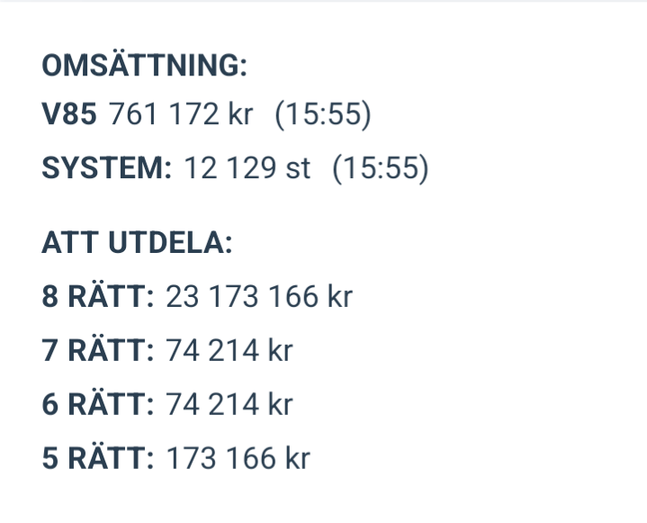 Samstag gibt es in der V85 Geld aus dem Säckel (23 Mio. SKr) dazu.