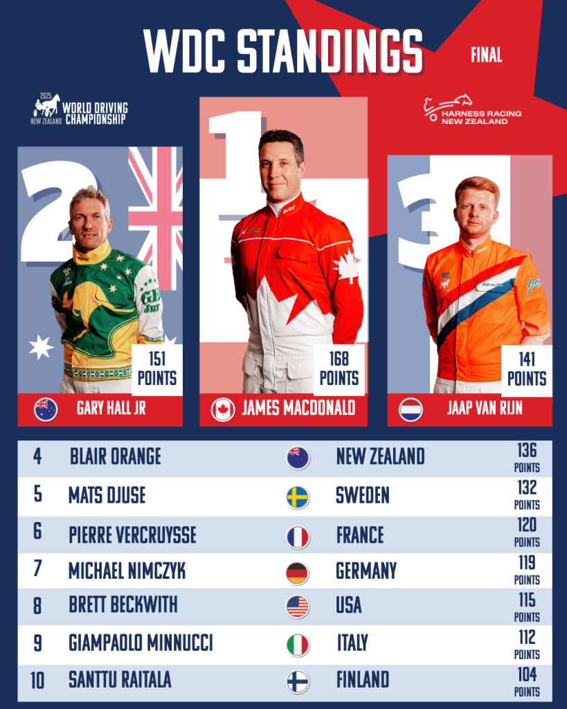 Am kommenden Dienstag gegen 1 Uhr nachts deutscher Zeit wird feststehen, wer der neue Trabrenn-Weltmeister ist. Nach den bereits am Freitag in Addington stattfindenden Wertungsläufen 11-15 und einem Intermezzo auf dem Winton Racetrack (Sonntag) kehren die zehn WM-Teilnehmer am Dienstag noch einmal auf Neuseelands wichtigste Trab- und Pacer-Rennbahn zurück. Dann wird auf dem Addington Racetrack der finale 20. Wertungslauf ausgetragen. Eingebettet in die wichtigste Veranstaltung des Jahres, denn nur wenige Stunden später findet an gleicher Stelle der mit einer Million neuseeländische Dollar dotierte New Zealand Trotting Cup statt.