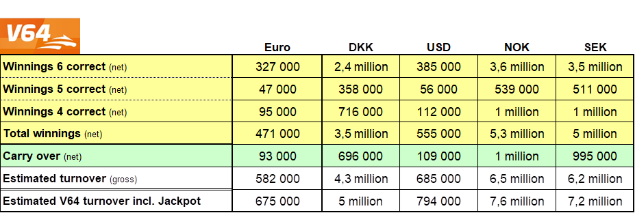 V64-Jackpot heute in Bollnäs