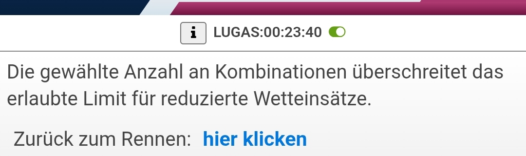 Cotopaxi schreibt: Geht nur mit begrenzten Anzahl der Wetten , dann nicht mehr Und das ist nicht viel Hab es versucht zu splitten, weil ich ja schlau bin, dachte ich, nee nee geht nicht ( bei 2 Cent probiert) bei 5 Cent kannste alles machen was und wie du es möchtest |