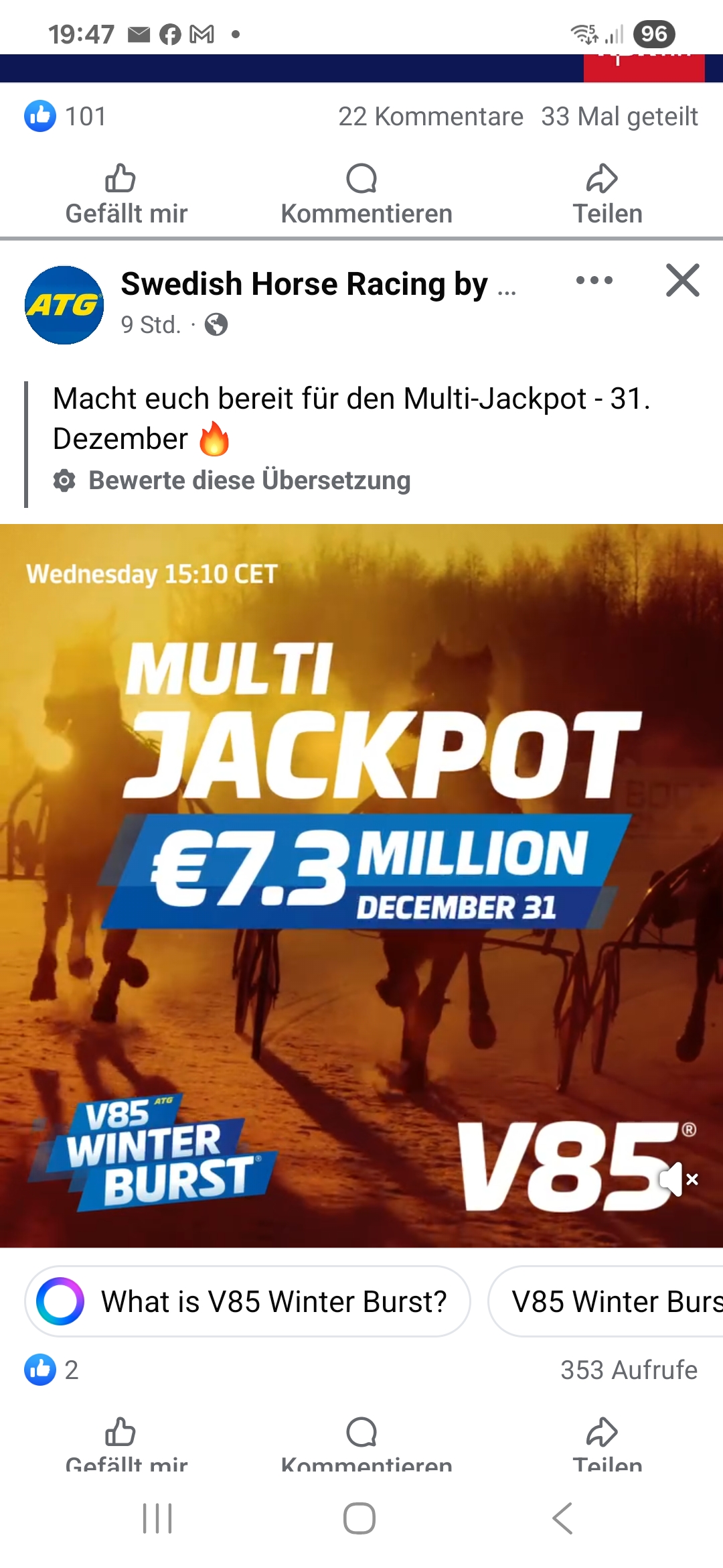 Die 80 Mio SEK sind aber der anvisierte Pool im 1. Rang oder ? Wie hoch der JP ist und ob noch was dazukommt in den nächsten Tagen , lässt die ATG sich offen . |
