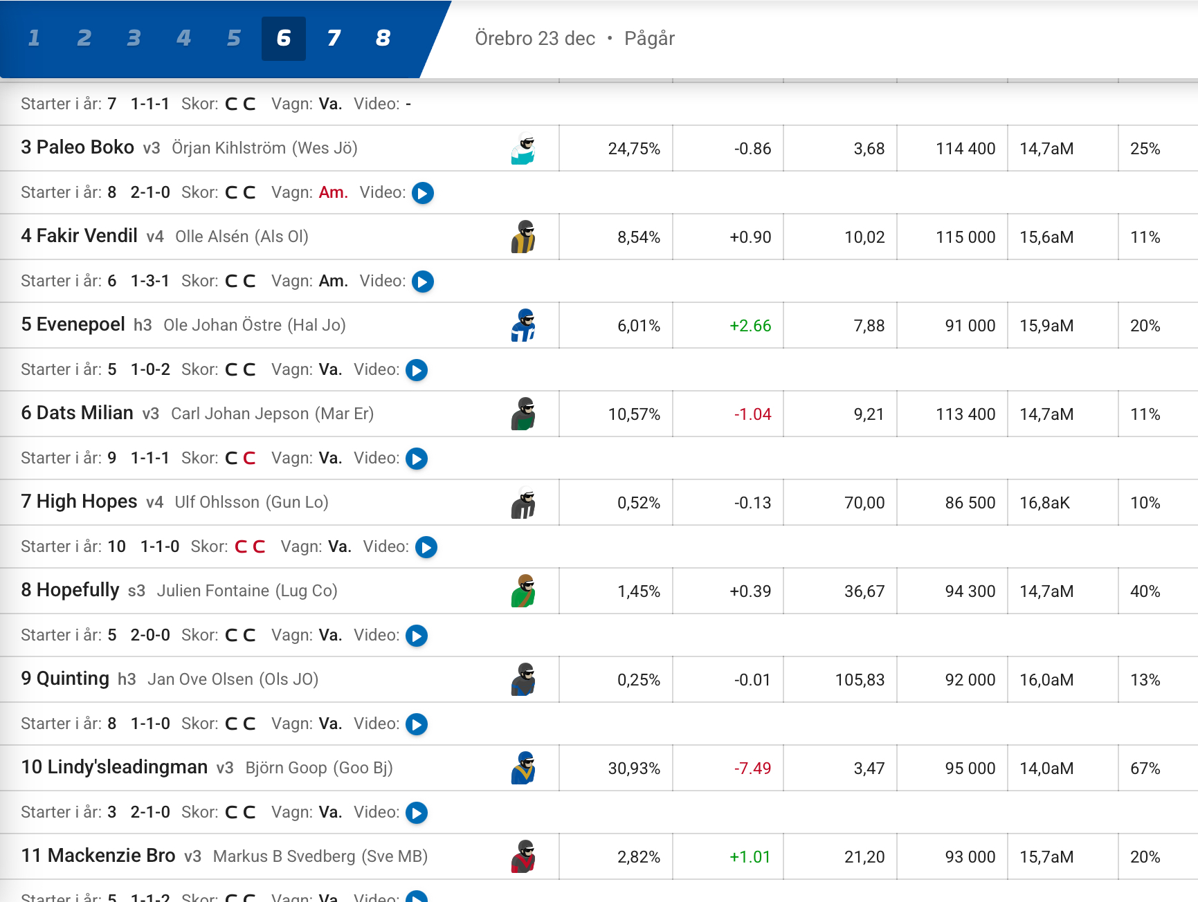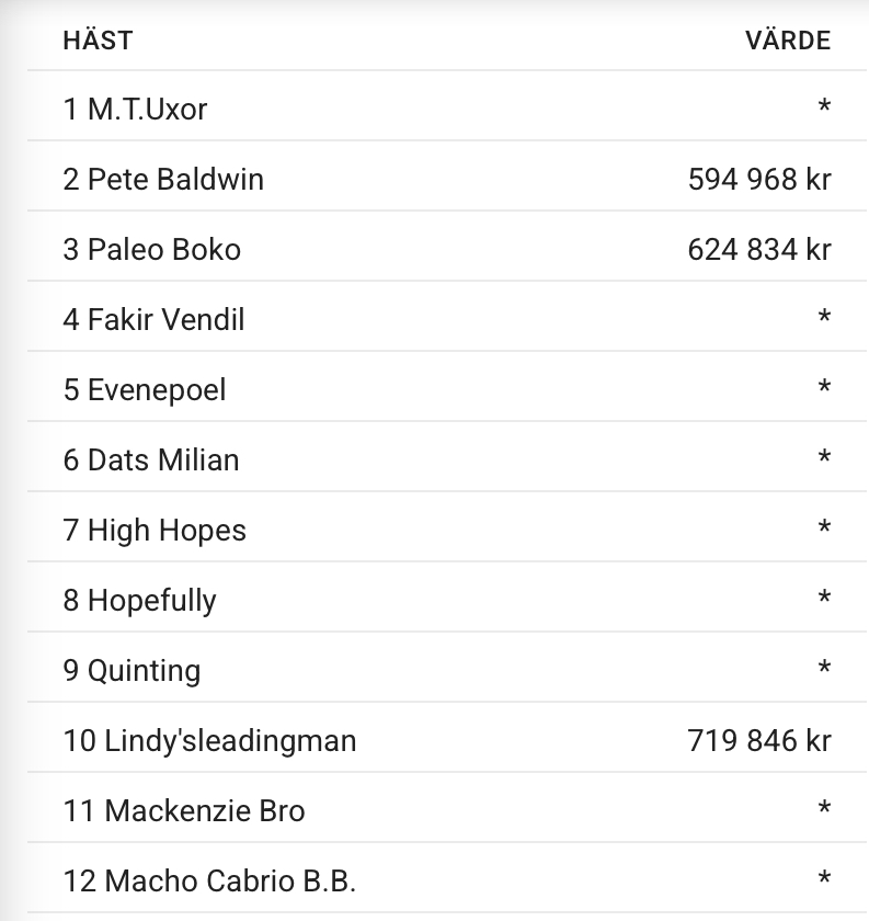 KillerQueen schreibt: Stand jetzt sind schon 70 Mio. SKr im Topf. Rückblick: Bei der V85-Premiere in Jägersro wollten sie 85 Mio. SKr für den OW drüberschreiben, Carryover In ("Topfmoney") war 4,7 Mio€. Die vor ein paar Tagen genannten "mindestens 80 Mio. Skr für den OW an Silvester" sind eigentlich jetzt schon Makulatur. Aber ich pflichte Walter zu: es müsste schon viel passieren, damit die mehr als 100 Mio. SKr für den OW drüberschreiben. Möglich wären jetzt schon 12 Mio. SKr als Versprechen... |