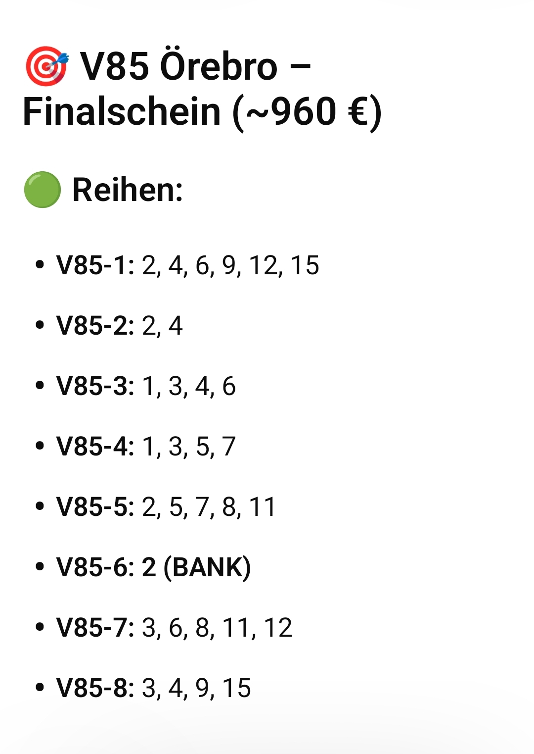 Habe jetzt ein bischen das Samstag Programm mit dem Jackpot durchgeschaut und es sieht alles anderes als leicht aus wobei leicht is es ja nie , habe aber selten so viele ausgeglichene Rennen gesehen wie dieses mal . Wünsche dir viel Glück lieber Walter und bis Samstag einen rauchenden Kopf 🤣😉 |