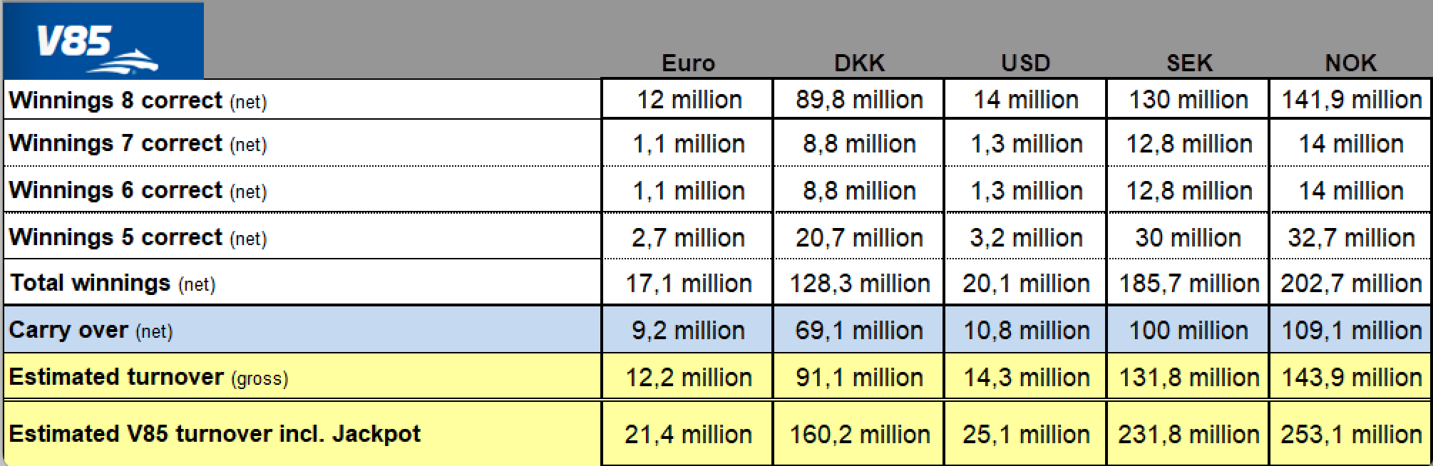 V85 Super Jackpot am 10. Januar 2026 in Romme