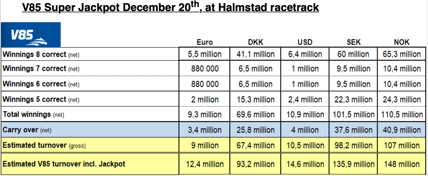 V85 Super Jackpot am 20. Dezember in Halmstad