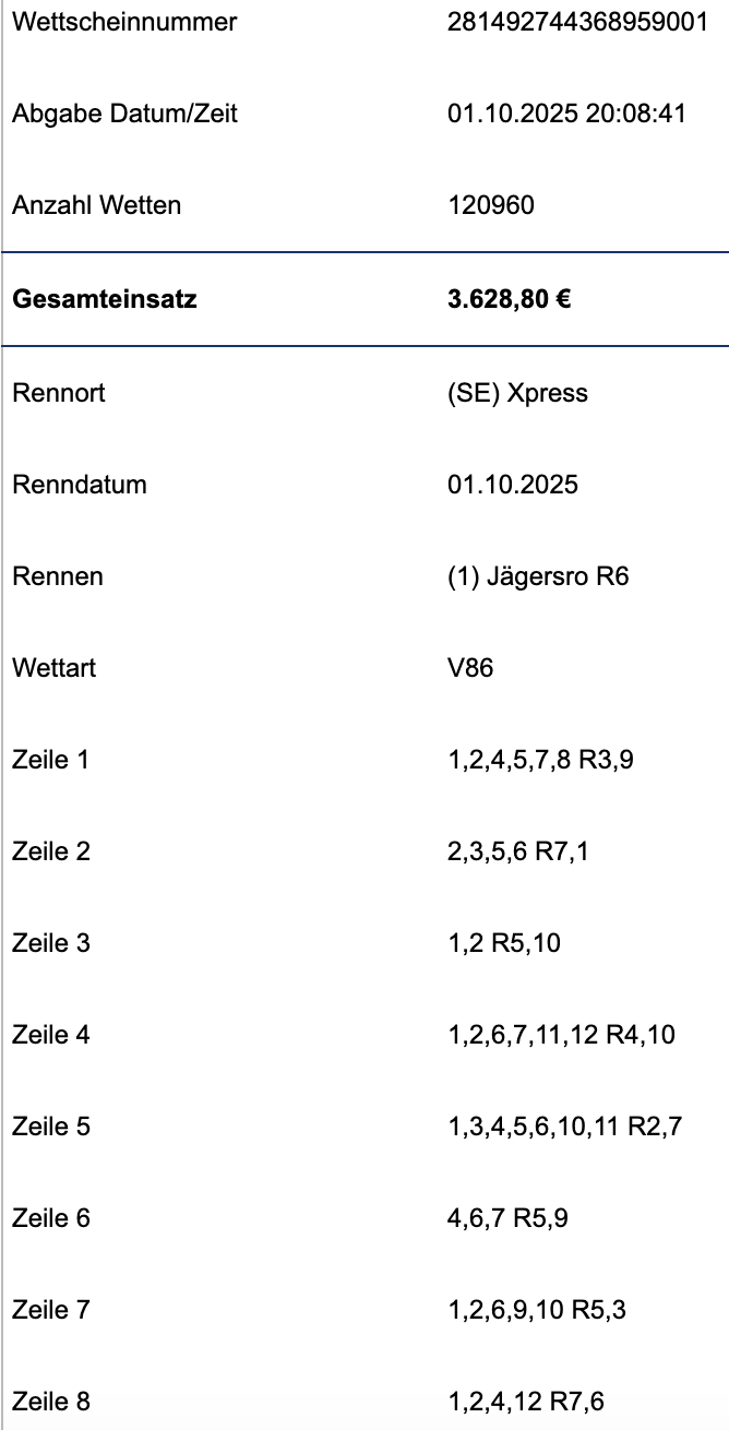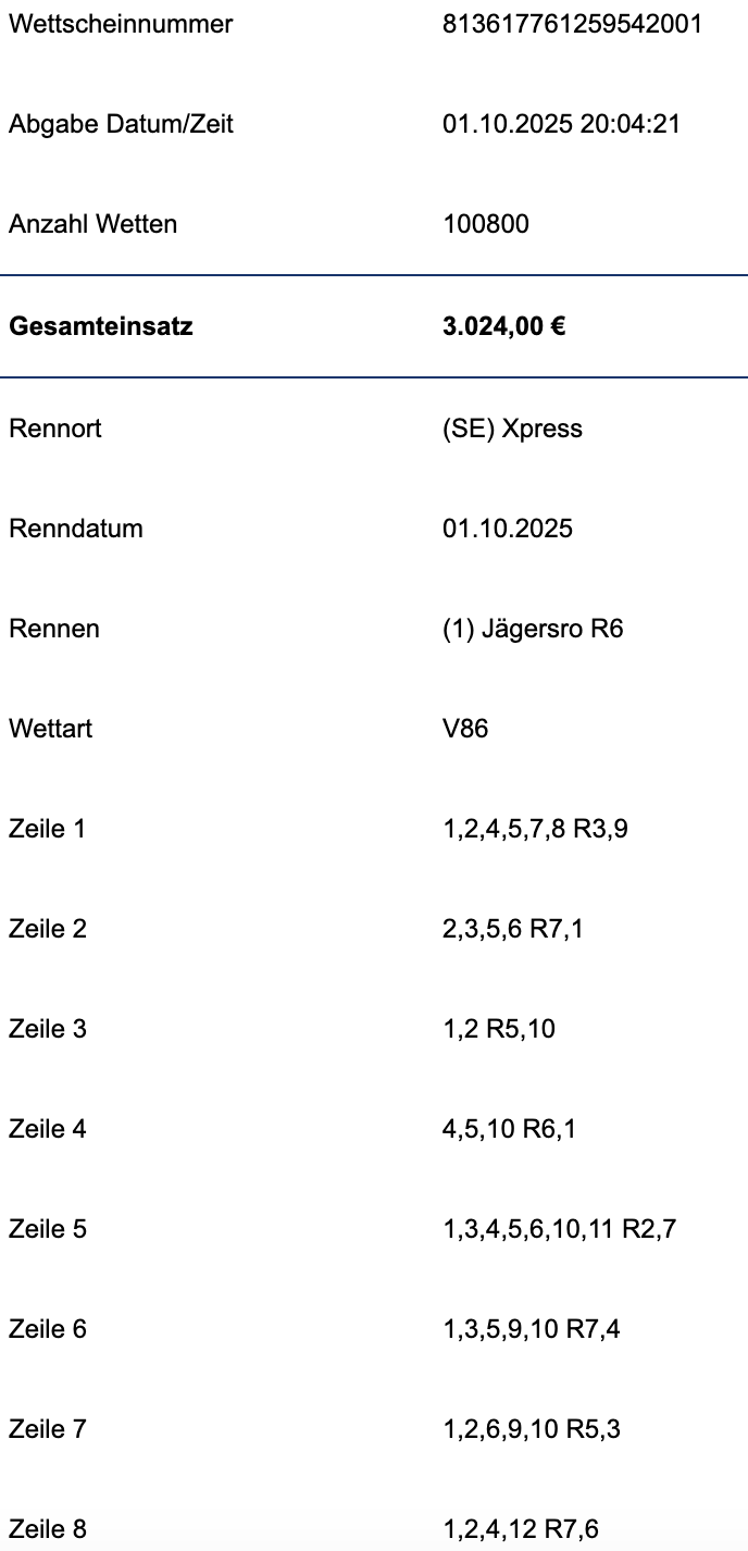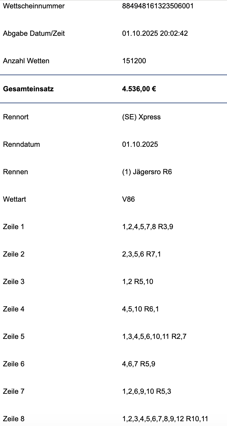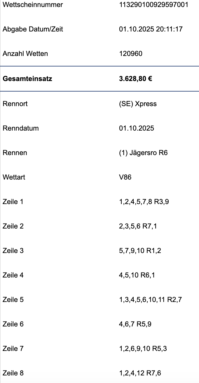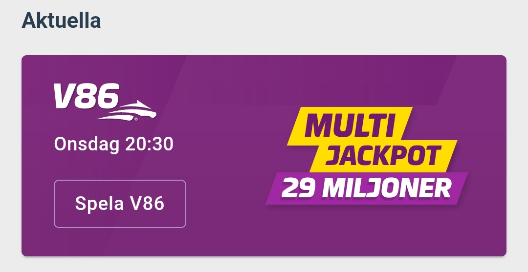 Der Jackpot steigt auf 2 Mio € Break Even nun 5.70 Mio € falls alle Ränge bezahlt werden . Glaube nicht das es 5.70 Mio € Umsatz werden ( letzter V86 Multi JP Umsatz 3.81 Mio € / JP 1.38 Mio € ) . Carryover, in: 2 018 908 EUR