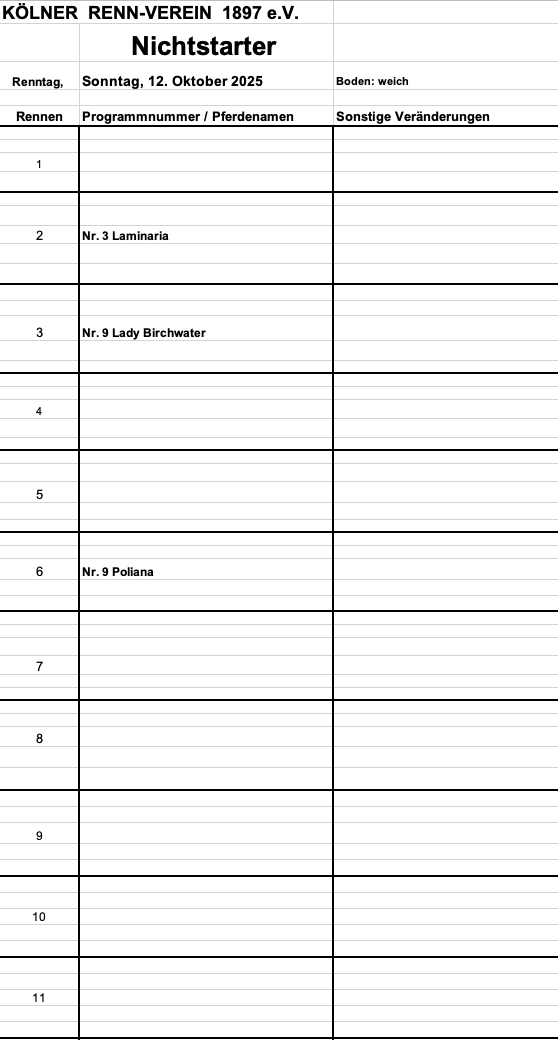Am Sonntag steht in Köln mit dem WETTSTAR.de – Preis des Winterfavoriten (GR.III, 1.600m,155.000 Euro) das ultimative Top-Rennen für den Zweijährigen-Jahrgang auf dem Programm. Seit 1899 wird diese traditionelle Meilenprüfung ausgetragen, seit 1998 auf Gruppe III-Level. Der Sieger darf sich Derbyfavorit für einen Winter nennen. Lando, Lagunas oder Lirung sind große Sieger im Winterfavorit und legten dort die Grundlage für ihre großen Karrieren. Aktuell befinden sich acht Top-Zweijährige im Aufgebot. Doppelt vertreten ist das heimische Quartier von Asterblüte-Trainer Peter Schiergen. Ins Auge fällt Guevara für den Stall Hanse, der den Kölner Winterfavoriten als Besitzer zum dritten Mal in Serie gewinnen könnte. Guevara ist auch die Wahl von Stall-Jockey Andrasch Starke. Aber auch der Ittlinger Nitaro zählt zu den chancenreichen Kandidaten. Peter Schiergens Kollege Henk Grewe greift ebenfalls mit einer Doppelspitze an. Hier sollte Lommi, benannt nach dem kölschen Kult Kneipier Hans „Lommi“ Lommerzheim und mit Thore Hammer-Hansen im Sattel für Renn-Vereinspräsident Eckhard Sauren beste Chancen auf eine vordere Platzierung haben. Hoffnungen macht sich auch Besitzer Denis Cengiz, der Dalyan mit Leon Wolff ins Rennen schickt. Das sechste Pferd, welches in Köln trainiert wird, heißt Somi (Martin Seidl) und kommt aus dem Erfolgsstall von Andreas Suborics. Somi konnte erst am vergangenen Renntag in Köln seinen ersten Karriere-Start gewinnen und gilt als Hoffnungsträger in seinem Stall für die Besitzer Leo und Peter Hamann. Das Kölner Aufgebot muss allerdings den Favoriten Göstam schlagen. Der Schützling von Trainer Andreas Wöhler (Gütersloh) reist als Sieger des Badener Zukunfts-Rennens in die Domstadt. Und man hat das Kölner Grand-Prix Rennen einem Start in Paris vorgezogen, was einen besonderen Hinweis verdient. Eduardo Pedroza wird im Sattel des hoch gehandelten Saxon Warrior-Sohnes sitzen. Komplettiert wird das Feld von Spezialist aus dem Stall von Yasmin Almenräder aus Mülheim. Geritten wird der Hengst von Derby-Siegreiterin Nina Baltromei. Ferienstart mit Nervenkitzel und Familienfreude So aufregend kann der Start in die Herbstferien sein! Am Sonntag verwandelt sich die Kölner Galopprennbahn in ein buntes Paradies für Familien und Pferdefans. Auf dem Programm steht neben acht packenden Rennen ein umfangreiches Familienprogramm passend zum Beginn der Herbstferien. Wenn sich die Tore zur Rennbahn öffnen, warten unter anderem ein Kettenkarussell, Pony Reiten und die Hüpfburg. Ein besonderes Highlight sind die beiden Shows der Kinderzauberin (um 13:45 Uhr und um 15:45 Uhr). Herbstlich geht es beim Basteln und Kinderschminken rund um unser Kinderland zu. Für alle Kinder bieten wir zudem eine spezielle Rennbahn-Rally an. Wer die richtigen Antworten auf die Fragen herausfindet, darf sich über eine kleine Überraschung freuen. Unter allen teilnehmenden Kindern verlosen wir am Renntag zwei Familienkarten für die kommende Rennsaison 2026. Tickets für den Renntag am 12. Oktober gibt es im Vorverkauf unter www.koeln-galopp.de Kinder unter 6 Jahren haben freien Eintritt, ab 6 bis 14 Jahre kostet das Ticket 6 EUR. Das Kinderland ist bis zum letzten Rennen geöffnet.