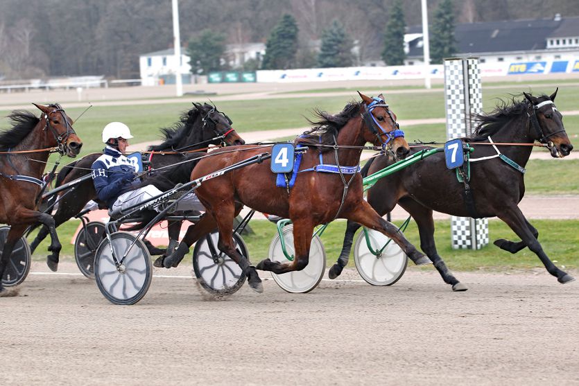 Seine ältere Schwester Lotta (Lars Schäfer) macht dann im abschließenden Handicap-Amateurfahren den Deckel drauf. Auch sie wird ihr Saisondebüt geben. Die sehr ehrliche Stute hat nicht die Kapazität ihrer Brüder, ruft aber ihre Möglichkeiten konstant ab und dürfte hier aus dem zweiten Band sofort Platzgeldchancen geltend machen. In Rennen dieser Art sind oft sehr viele eher formschwache Pferde aus mehreren Bändern unter Order. Daher kommen diese Aufgaben auch häufig als echtes Wetträtsel daher.