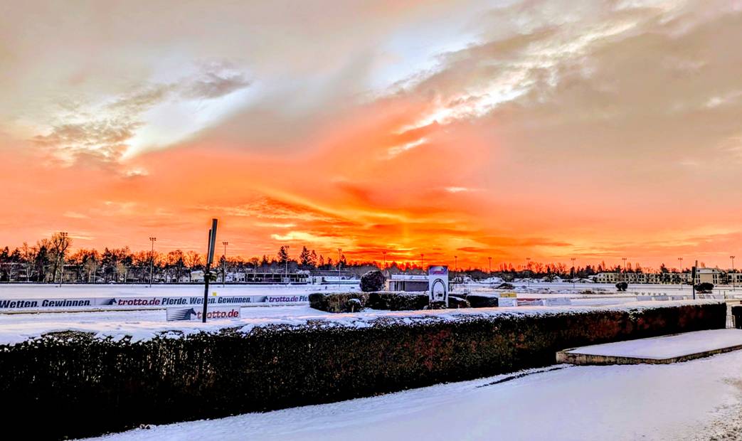 Keiner verkörpert das Geschehen auf der Derby-Bahn so sehr wie die Trabrenn-Legende Peter Kwiet. Heute feiert der zwölfmalige Mariendorfer Champion seinen 86. Geburtstag – und zwar bei bester Gesundheit. Sein jugendlicher Elan – wie auch auf dem Foto mit der Schauspielerin Brigitte Grothum aus dem Jahr 1974 ersichtlich – ist ihm stets erhalten geblieben. Und ihm zu Ehren war der Sonnenaufgang auf „seiner Renne“ heute Morgen offenbar besonders schön. Wir sagen: Happy Birthday, Kwiete!