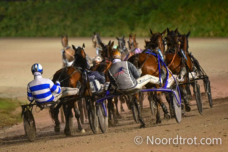 Interessant besetzt ist auch die anschließende Bänderstartprüfung, die ebenfalls über 2.600 m führen wird. Vorneweg sollte frische Siegerin Novastar Draviet (Patrick de Haan) die besten Karten haben. Tritt die laufgewaltige Stute glatt ein, dann wird sie hier das Maß der Dinge sein. Mit Mystical Spell S (Andre Bakker) ist nur noch ein weiteres Pferd im ersten Band. Die Stute landete schon zuletzt klar hinter der Favoritin und dürfte sofort deren Windschatten suchen. Einen gewaltigen Antritt hat Liberto (Jaap van Rijn), der allerdings nach einem missglücktem Versuch im Trabreiten rund zwei Monate ausgesetzt hat und dieses Rennen noch benötigen könnte. Auch Falstaff Font (Michel Rothengatter) versuchte sich zuletzt in dem anderen Metier, kam da aber bereits im ersten Bogen von den Beinen. Der auf dem langen Weg gut aufgehobene Italiener ist vor dem Wagen wieder ein Top-Drei-Kandidat. Die beiden Füchse Velten Red Red Red (Frans van der Blonk) und Crisper (Jeffrey Mieras) sind hier auch noch nicht heraus.