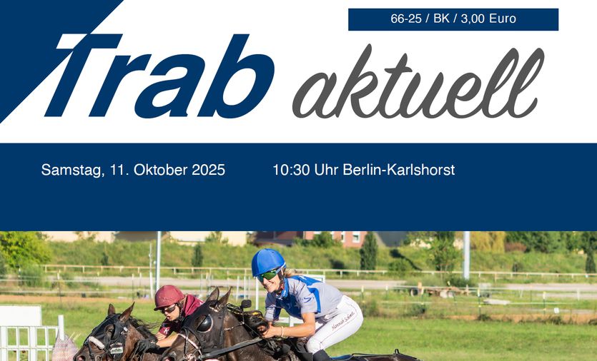 News Trab Das PDF-Rennprogramm für Berlin-Karlshorst (11.10.2025) von Hans Christian Panny - vor 4 Stunden 0 News Trab, 08.10.2025Anbei zur PDF-Ausgabe für den Renntag am Samstag: 2025_10_11_TrabAktuell_BK_66...