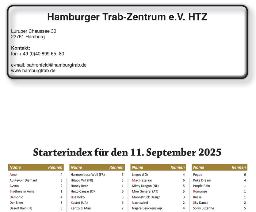 Anbei zur PDF-Ausgabe für den Renntag am Donnerstag: