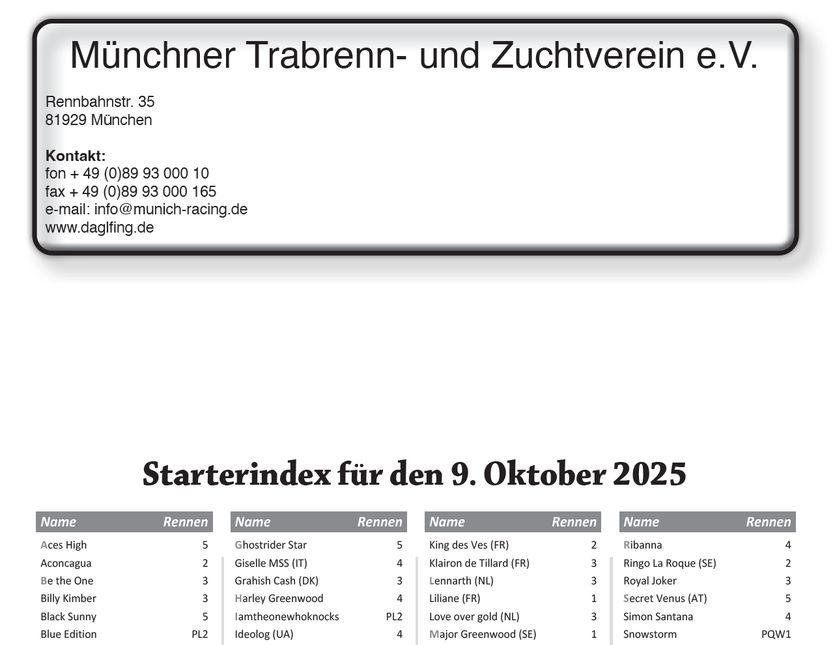 Anbei zur PDF-Ausgabe für den Renntag am Donnerstag: