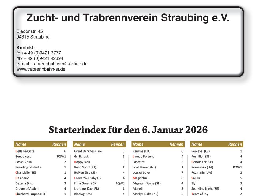 Anbei zur PDF-Ausgabe für den Renntag am Dienstag: