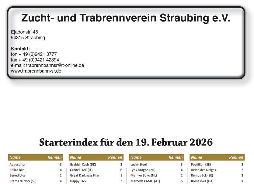 Anbei zur PDF-Ausgabe für den Renntag am Donnerstag: