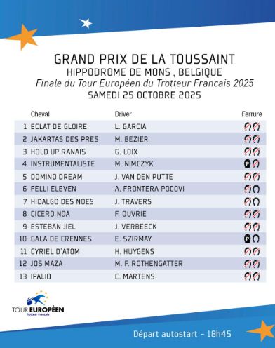 Mit allen fünf Etappensiegern lässt das Finale wenig Wünsche offen. Instrumentaliste (Sieger Mons), Jos Maza (Wolvega), Jakartas Des Pres (Avenches), Felli Eleven (San Pardo) und Hidalgo Des Noes (Gelsenkirchen) werden sich am späten Samstagnachmittag im als Grand Prix de la Toussaint gelaufenen Rennen, hinter dem Auto versammeln.